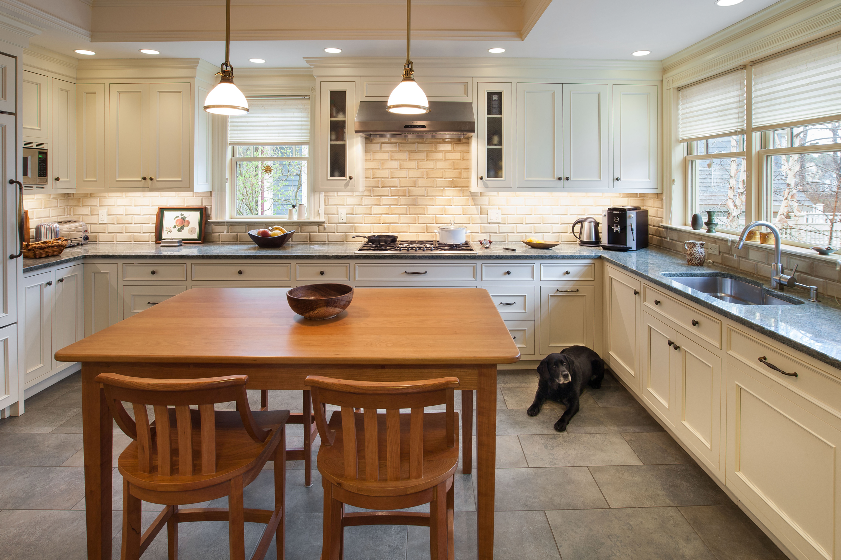 We installed the gas cooktop and the nice deep sink and we moved pipes in the wall behind it so there could be windows and a good view of the garden to compensate the person stuck doing the dishes.